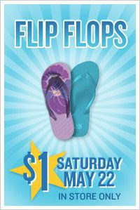 Old Navy is having a can’t miss $1 flip flop sale this Saturday, 5/21. Yes, that’s correct…you can get flip flops for your whole family for just $1 per pair! I suggest arriving early though as this sale is always super popular! Also, if you will be shopping at the Old Navy at Marple Crossroads Shopping Center (Springfield/Broomall area), they will be collecting old flip flops to donate to TerraCycle, who in turn will be using the flip flops to create new playgrounds for kids!